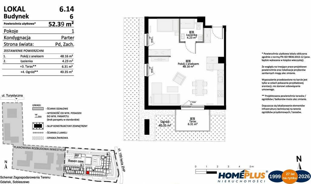 Apartament nr 6.14: taras: 6,31 m, ogródek: 40,35 m