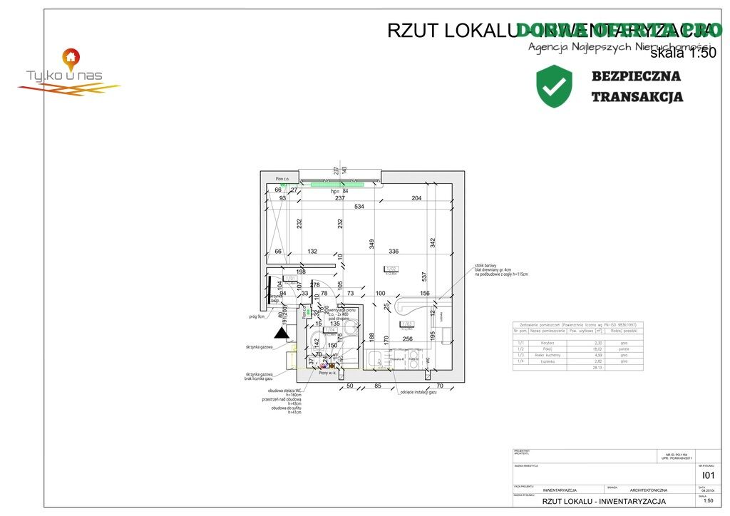 faktyczny metraż wynosi 28,13 m².