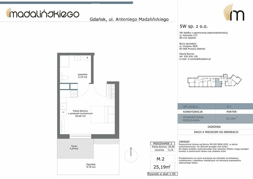 Mieszkanie M.2 o powierzchni użytkowej 25,19 m2 składające się z