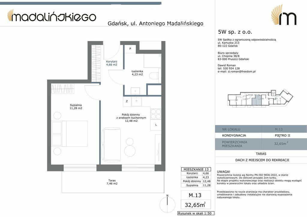 Mieszkanie M.13 o powierzchni użytkowej 32,65 m2 składające się z