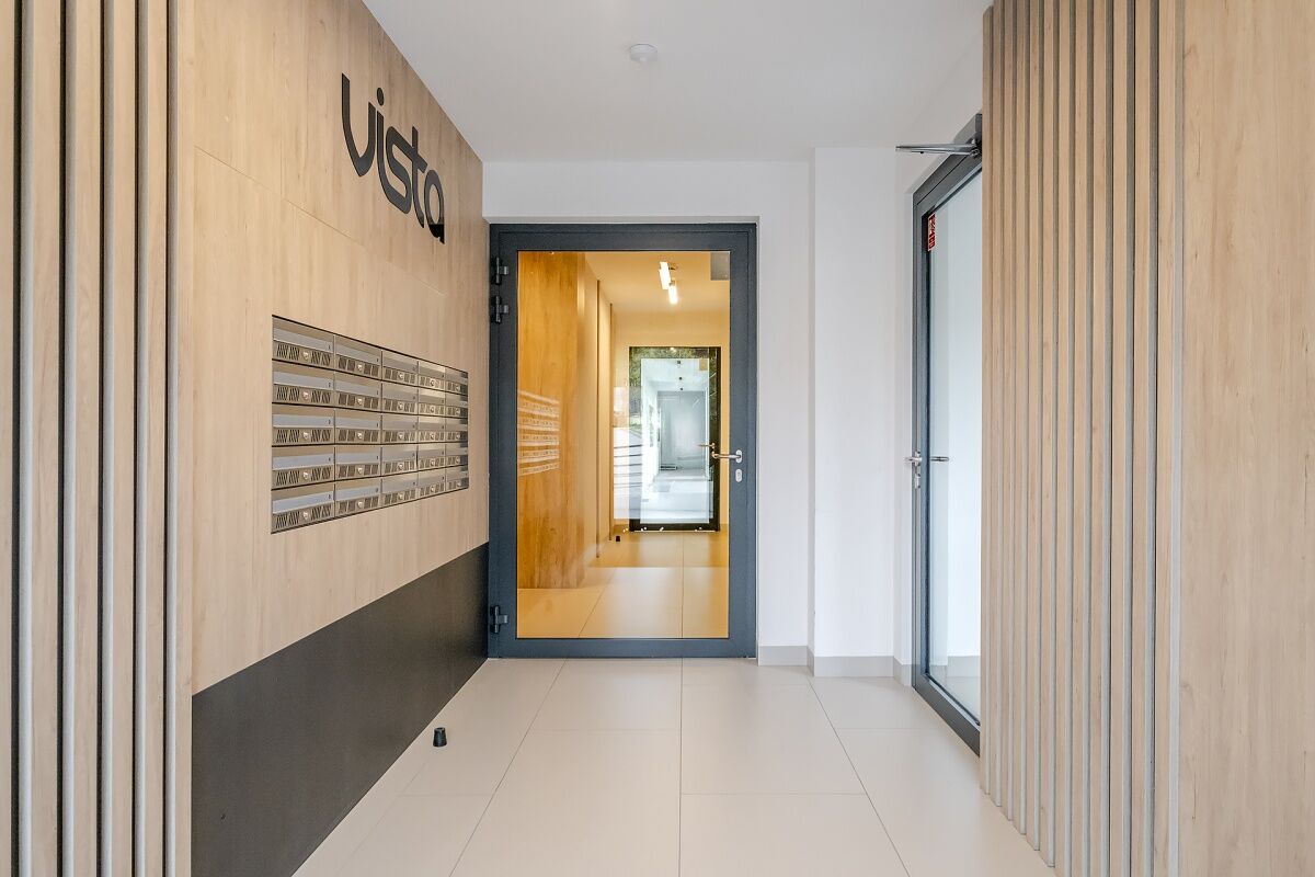 Inwestycja Vista to kameralny blok oddany w 2024 roku, składający się zaledwie z dwóch klatek 4-ro i 5-cio piętrowych. Część, w której znajduje się oferowane mieszkanie liczy zaledwie 25 mieszkań, z czego jedynie 4 są wynajmowane. Pozostałe mieszkania należą do stałych mieszkańców, co gwarantuje spokój i bezpieczeństwo. Inwestycja oferuje mieszkańcom dostęp do prywatnej siłowni, wyposażonej w nowe sprzęty wysokiej jakości, oraz oddzielnej sali zabaw dla dzieci. Wokół inwestycji zagospodarowane przez dewelopera tereny zielone z ogrodami deszczowymi oraz bieżąco pielęgnowaną roślinnością, jak i leżakami do odpoczynku z widokiem na dzielnicę.
