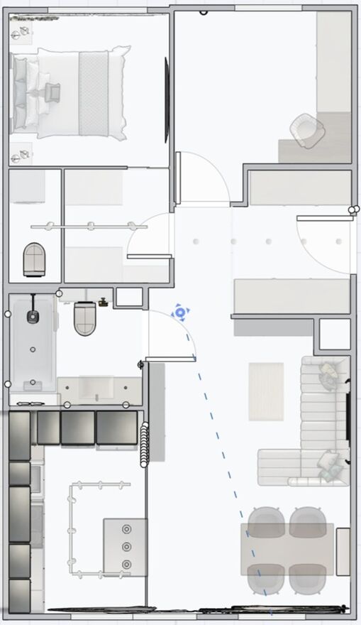 Apartament zamieszkały od niespełna roku, projektowany i urządzany "pod siebie" z licznymi udogodnieniami. Idealny zarówno dla rodziny 2+1, jak i dla pary z osobną dużą garderobą lub biurem.