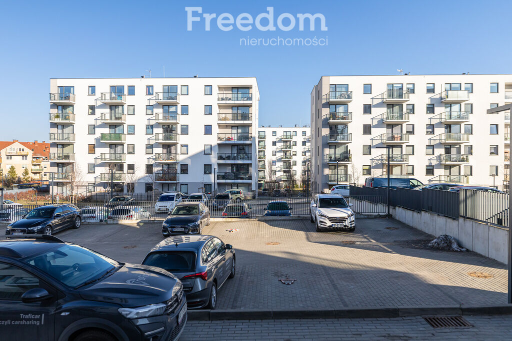 parkingowy zabezpieczony jest szlabanem, co zwiększa poczucie