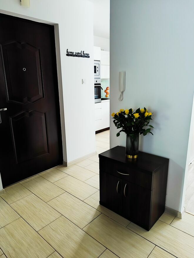 Kameralny, ogrodzony i monitorowany apartamentowiec z ochroną 24/7,brama na pilota, dostęp do monitoringu w aplikacji mobilnej.