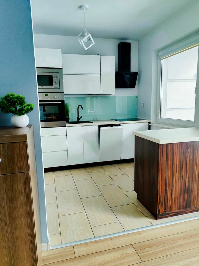 Pełne wyposażenie – meble na zamówienie, sprzęt AGD, gotowe do zamieszkania.