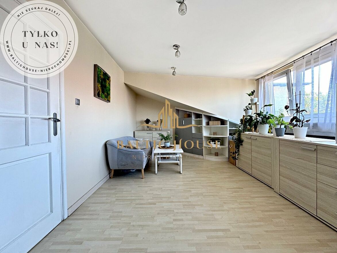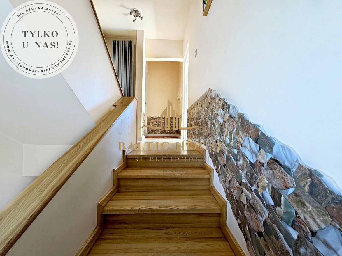 Dom posiada około 253 m2 powierzchni użytkowej. Łącznie z piwnicami powierzchnia wynosi ponad 321 m2. Nieruchomość posadowiona na lekkim wzniesieniu, posiada taras, z którego widok rozpościera się na całą panoramę zarówno Przymorza jak i lasu. Działka o powierzchni 366 m2. Ogrzewanie miejskie. Przed posesją ładnie zagospodarowany teren, utwardzony kostką brukową z niewielką ilością krzewów i zieleni. Ogrodzenie stalowe. Dostępne jedno miejsce parkingowe w garażu, kolejne dwa przed budynkiem. Na tylnej części działki znajduje się niewielki ogród.