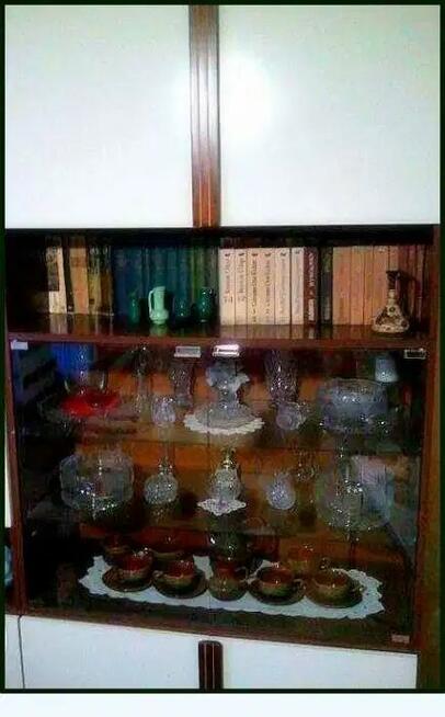 sprzedam: szafę / witrynę wenge (ciemny brąz+biel) ze szklanymi drzwiczkami mebel na rozdzielnej podstawie z białymi ...
