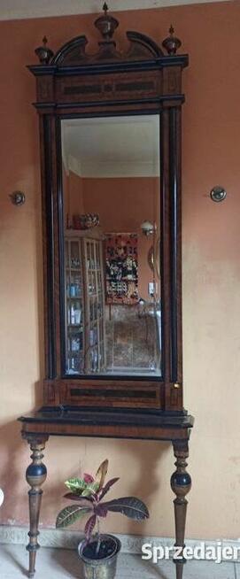 Lustro z konsolą. XIX wiek. Eklektyk. Drewno i kryształowe szkło. Cudne. Cena 2950 zł. Wymiary lustra: ...