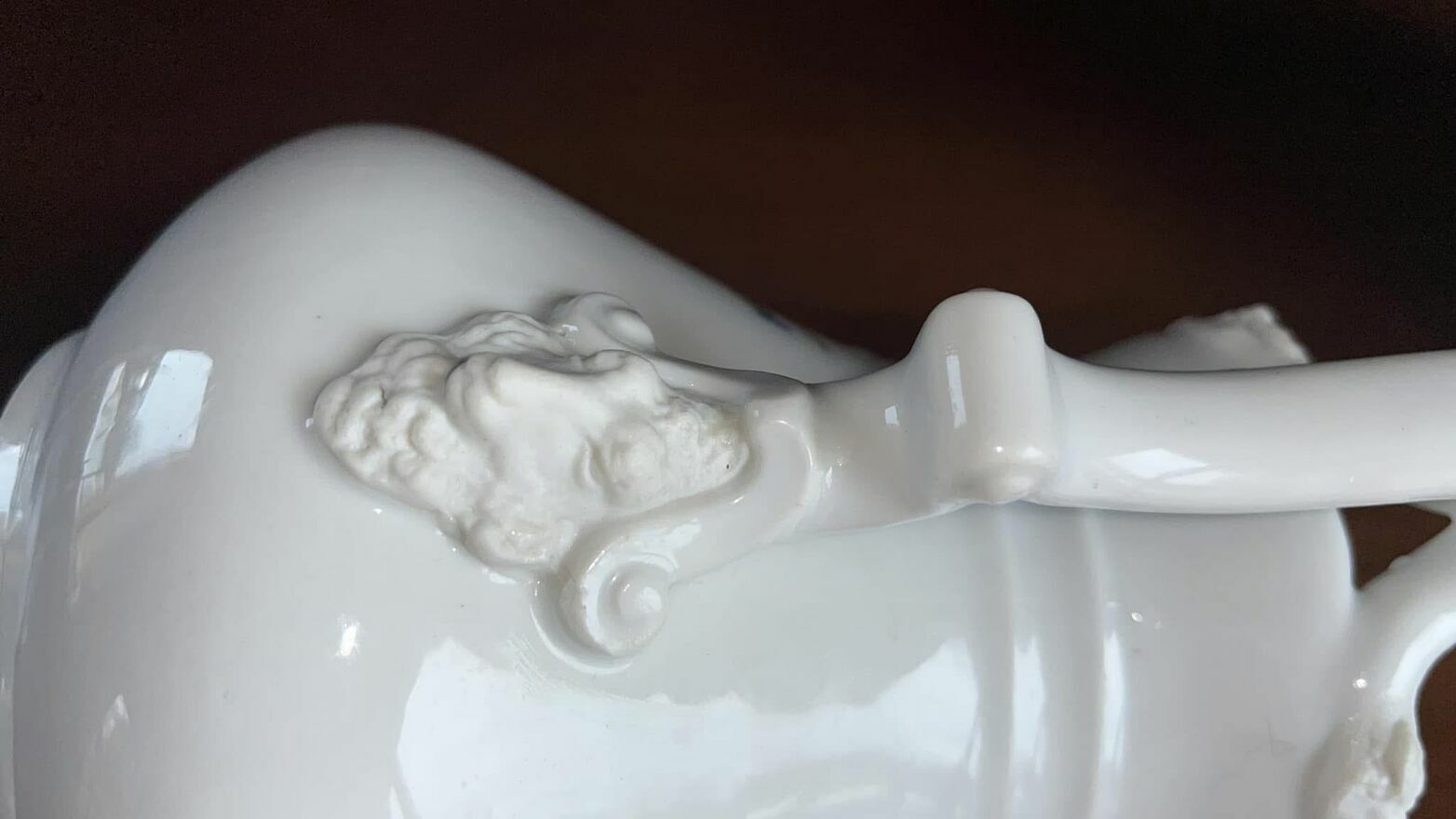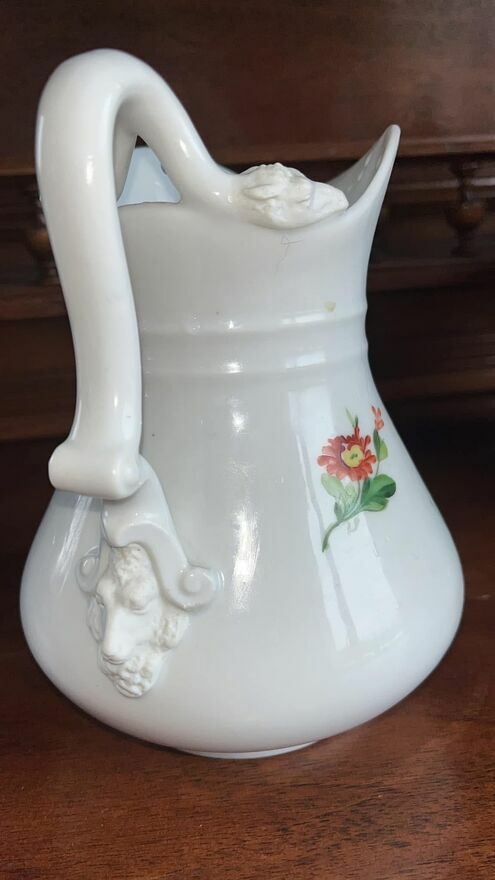 Dzbanek do wody. Barszczu. Kompotu. Mleka.. B&G. Copenhagen. Denmark. Sygnatura z lat 1853- 94.Przepiękna biała porcelana z baranimi głowami przy odsadzeniu uchwytu.