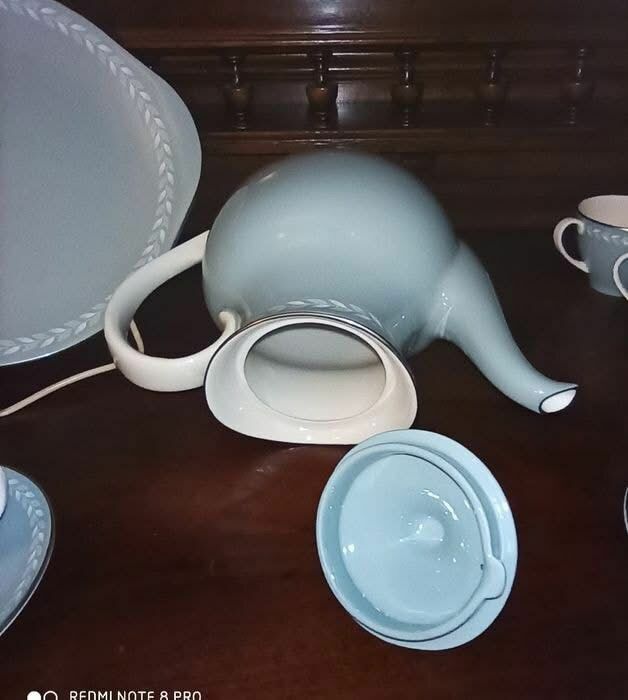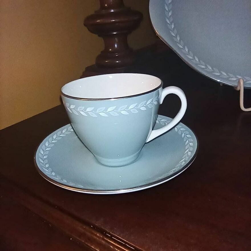 Filiżanka AEGEAN. Royal Dulton. England.Biała porcelana, złocona na krawędzi.