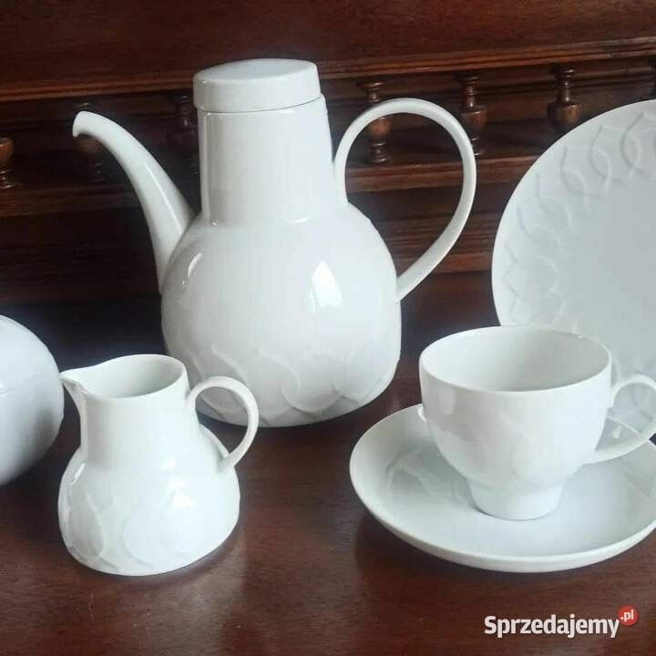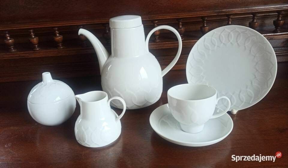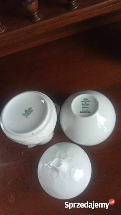 Wytłoczenia na filiżankach, talerzykach, dzbanku, mleczniku i cukiernicy.