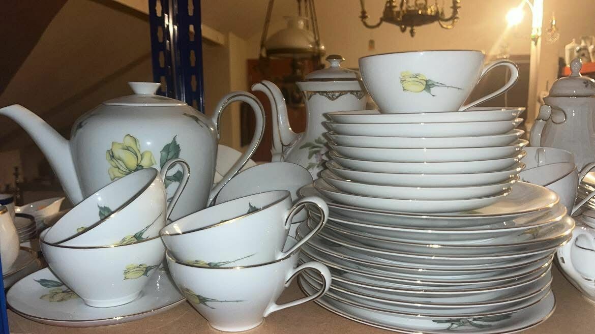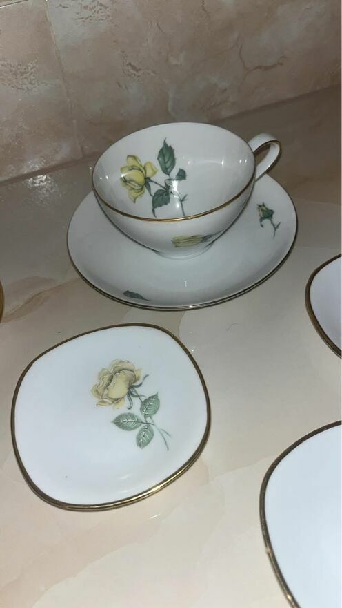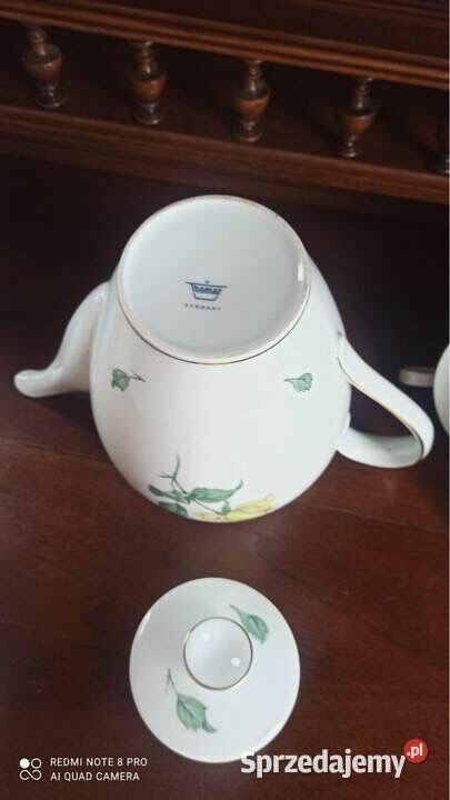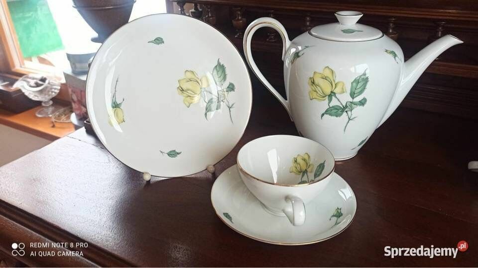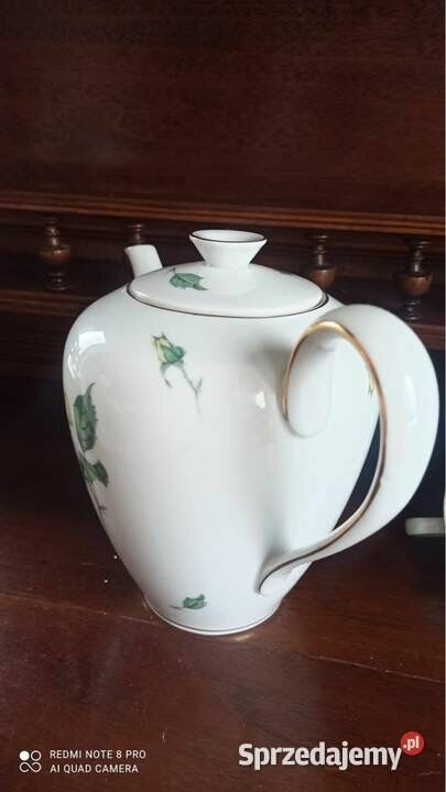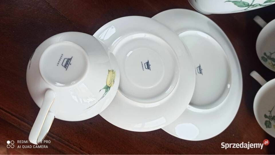 Piękna porcelana, w białym kolorze. Złocenia na krawędziach talerzyków. I na filiżankach.