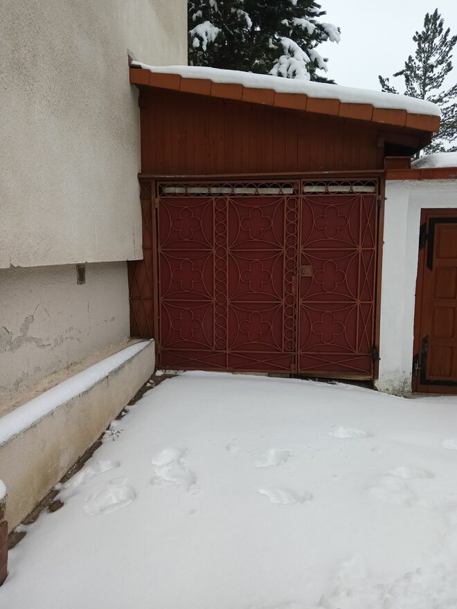 Garaż zrobiony z wiaty. Może być jako magazyn lub przechowanie średniego, małego modelu samochodu.Brak kanału. Oświetlenie jest.