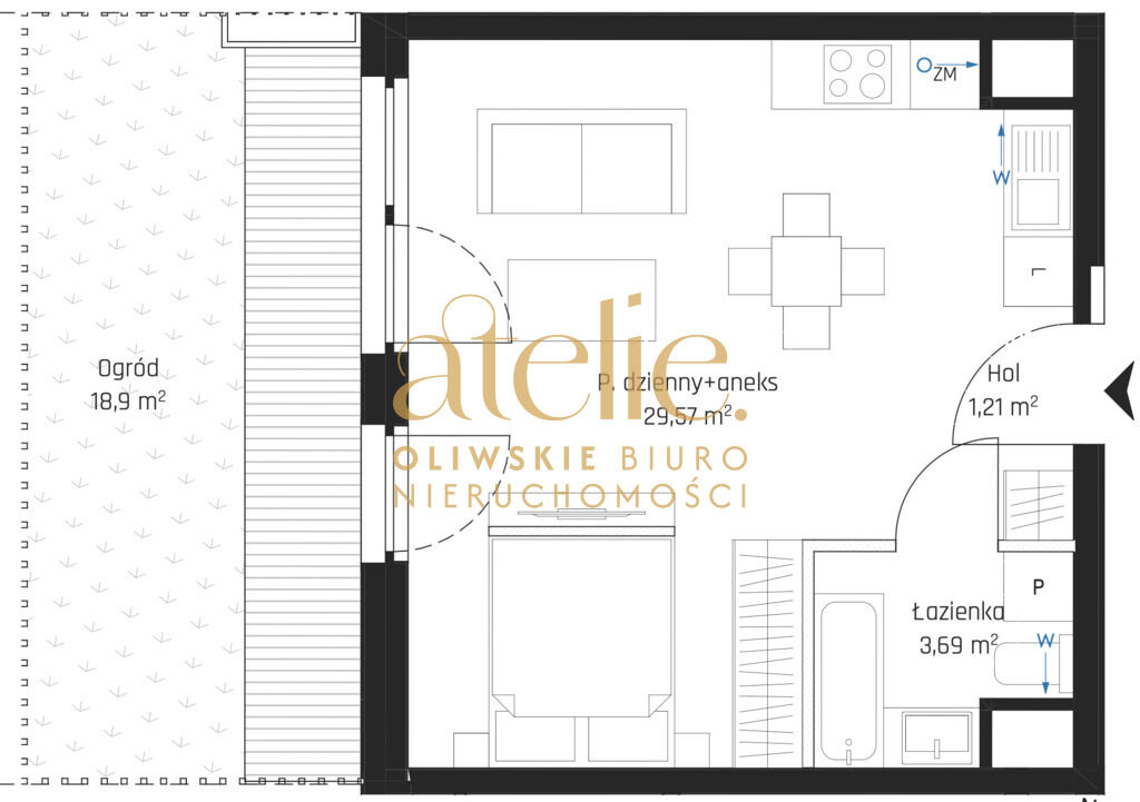 Na sprzedaż apartament o powierzchni 34,47 m² z ogrodem 18,9 m²,położony w prestiżowej inwestycji przy ul. Siennej Grobli w