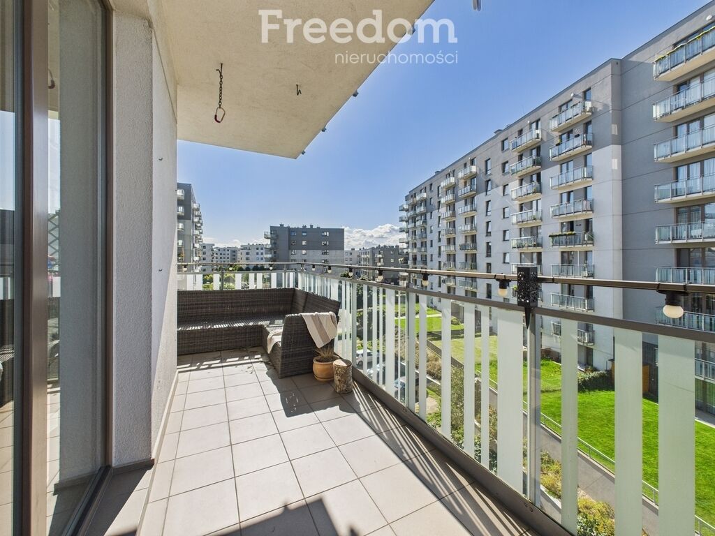 balkon o powierzchni 12 m², z widokiem na osiedle i zieleń.
