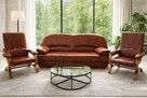 Masywny, duży komplet wypoczynkowy składający się z 3-siedziskowej kanapy i dwóch obszernych, wygodnych foteli z ...