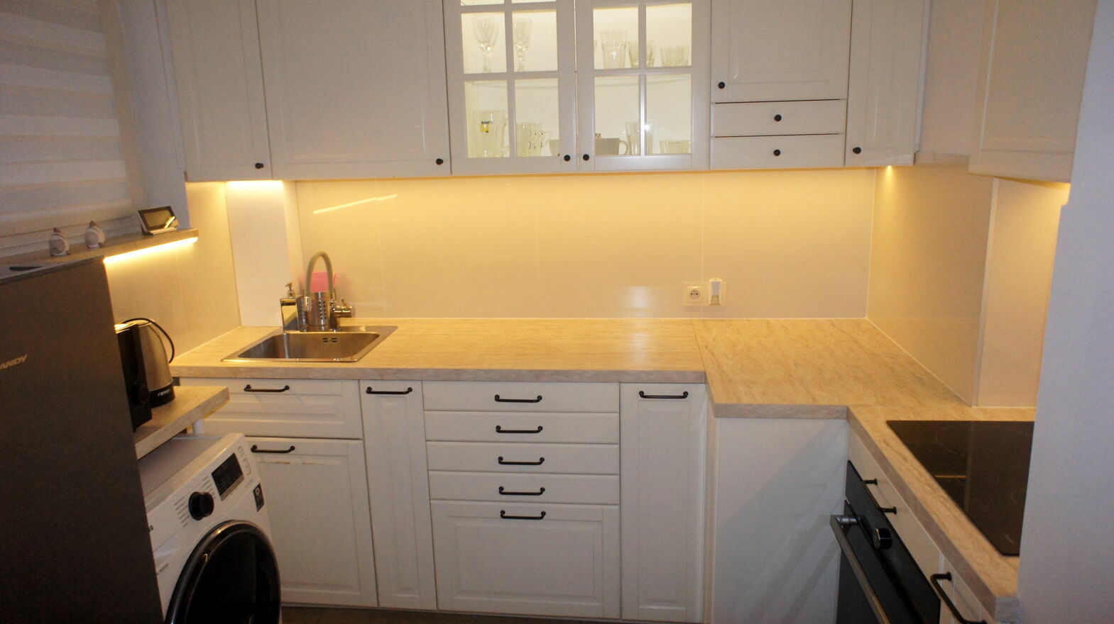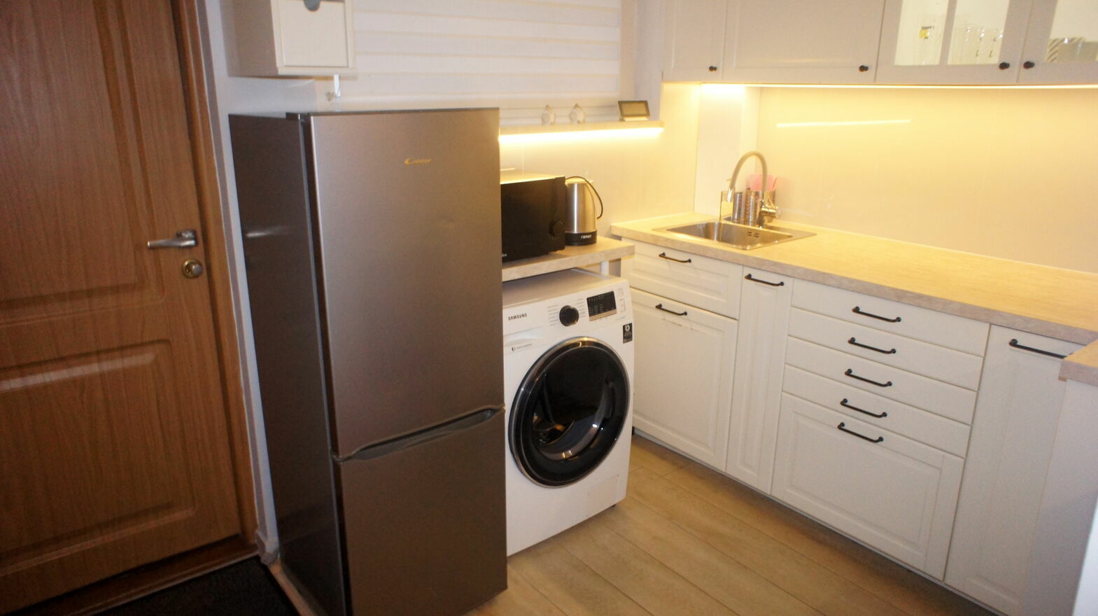 - Osobnej kuchni - lodówka, pralka, piekarnik, czajnik elektryczny, płyta grzewcza i meble kuchenne,