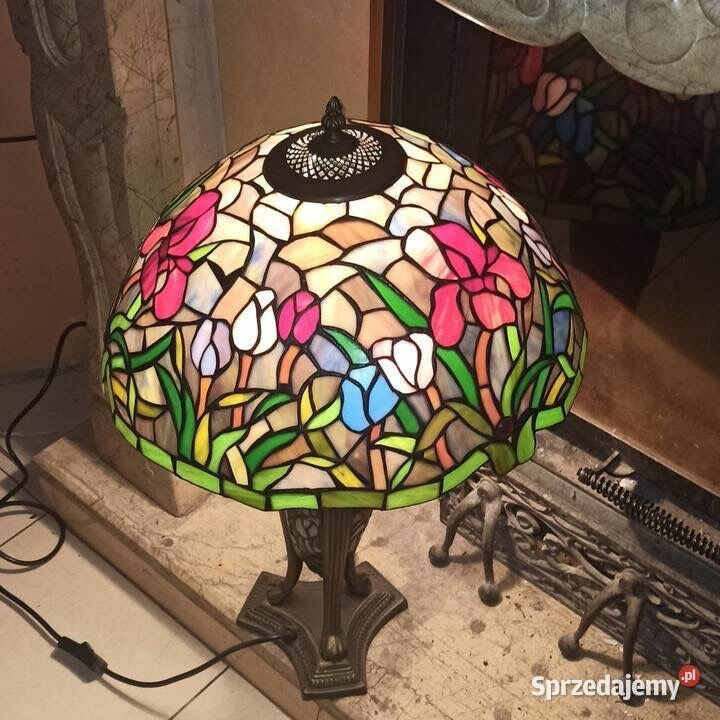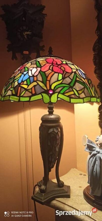 Lampa stojąca, w stylu Tiffany. Motywy kwiatowe na kloszu
