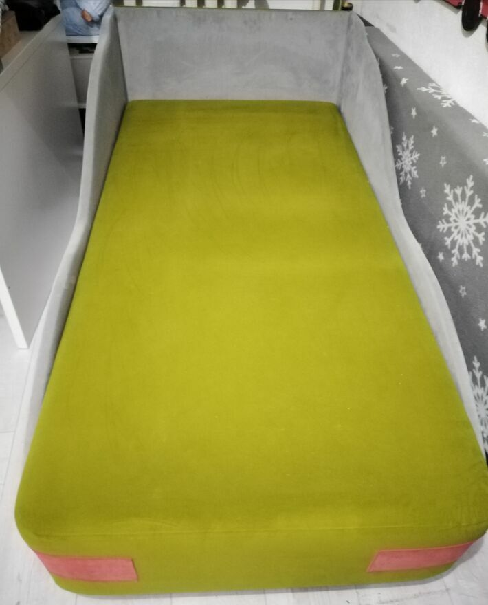 Piękne tapicerowane wygodne łóżko z pojemnikiem na posciel 180x80 łóżko posiada półkę nad głową. Materiał niebrudzacy miły w dotyku, łóżko robione przez tapicera żadna sieciówka polecam bo warto. Gratis lampy PhilipsIza
