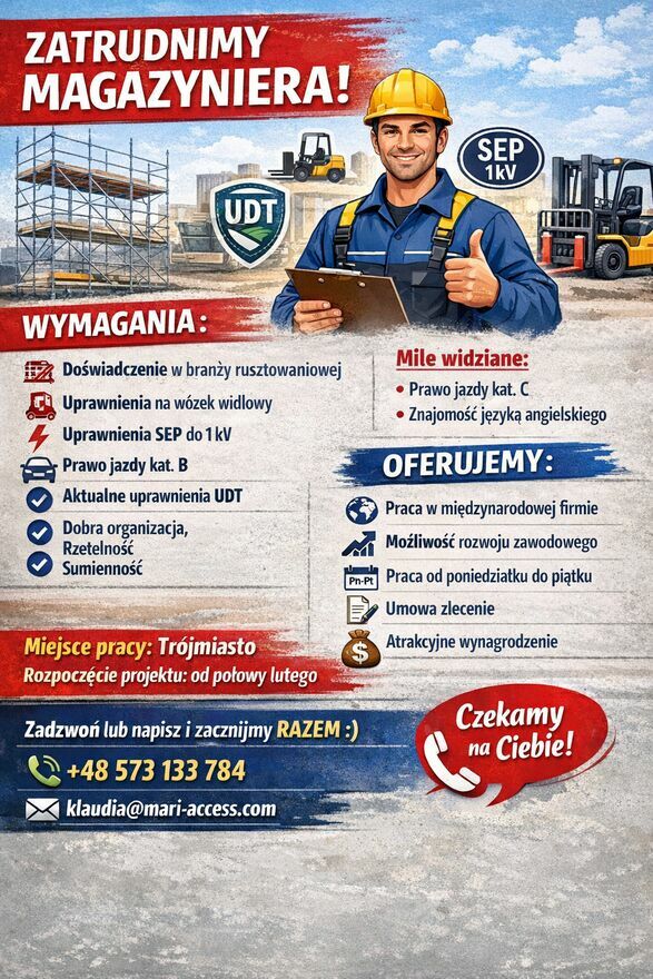 Wymagania:Doświadczenie w branży rusztowaniowej
