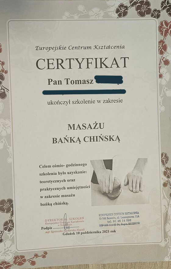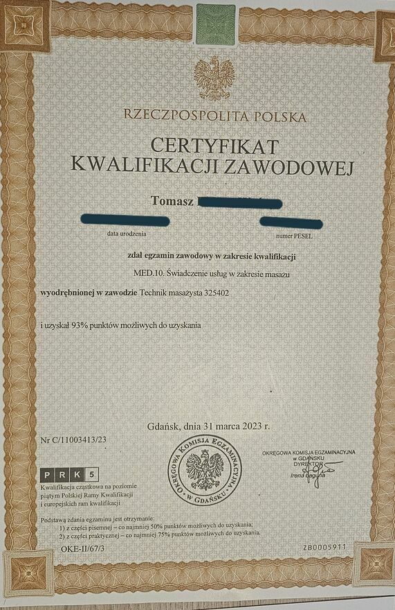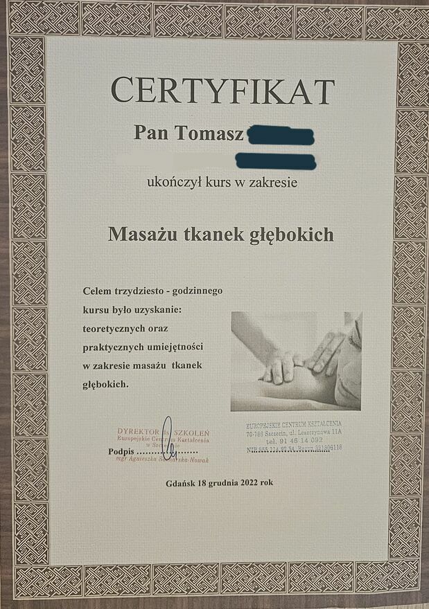 I have professional qualifications Med10 - massage therapist. Please feel invited, Tomasz