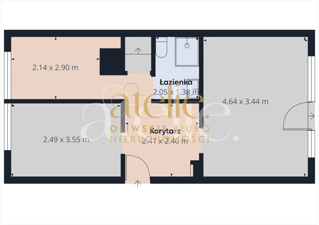 Mieszkanie o powierzchni 42,4 m² znajduje się na 2 z 4 pięter i