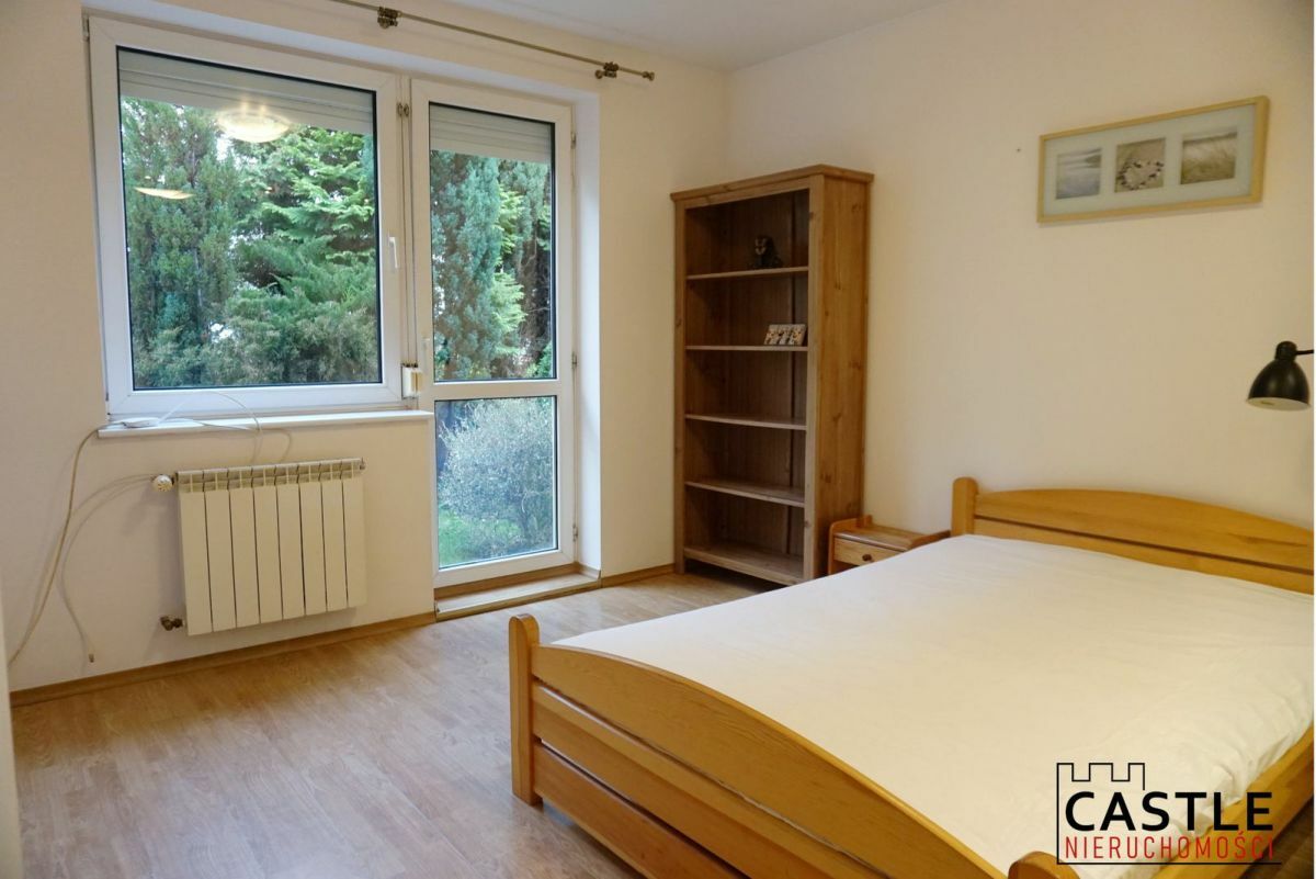 -ustawna sypialnia z szafą i wyjściem na drugi, większy ogródek