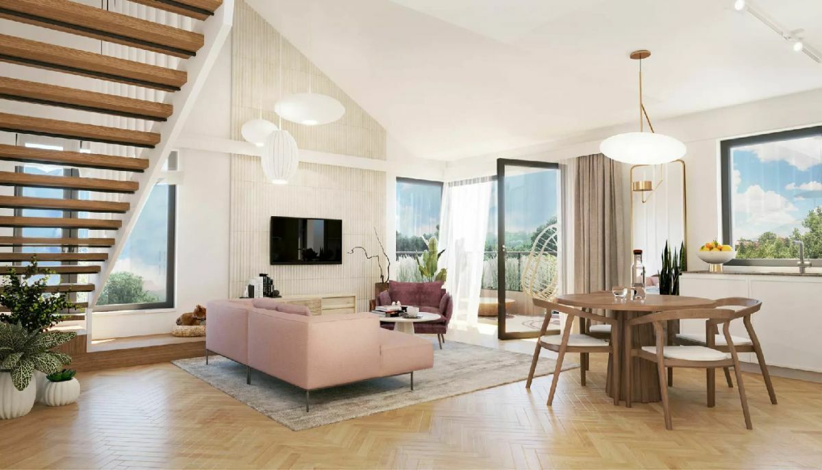 • Inwestycja ta, to osiedle pięciu budynków mieszczących w sumie 120 apartamentów o zróżnicowanej powierzchni – od 28 m2 do 160 m2. Wysokie sufity, duże okna i przemyślany układ sprawiają, że cechuje je optymalna ekspozycja na światło słoneczne. Wszystkie mieszkania dysponują balkonami, przestronnymi tarasami bądź – jak w przypadku lokali parterowych – prywatnymi ogródkami. Niektóre z apartamentów na najwyższej kondygnacji posiadają antresole.