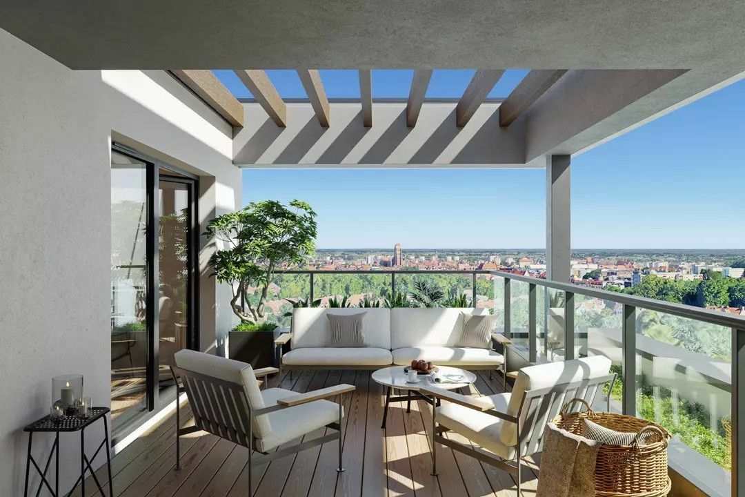 • Inwestycja ta, to osiedle pięciu budynków mieszczących w sumie 120 apartamentów o zróżnicowanej powierzchni – od 28 m2 do 160 m2. Wysokie sufity, duże okna i przemyślany układ sprawiają, że cechuje je optymalna ekspozycja na światło słoneczne. Wszystkie mieszkania dysponują balkonami, przestronnymi tarasami bądź – jak w przypadku lokali parterowych – prywatnymi ogródkami. Niektóre z apartamentów na najwyższej kondygnacji posiadają antresole.