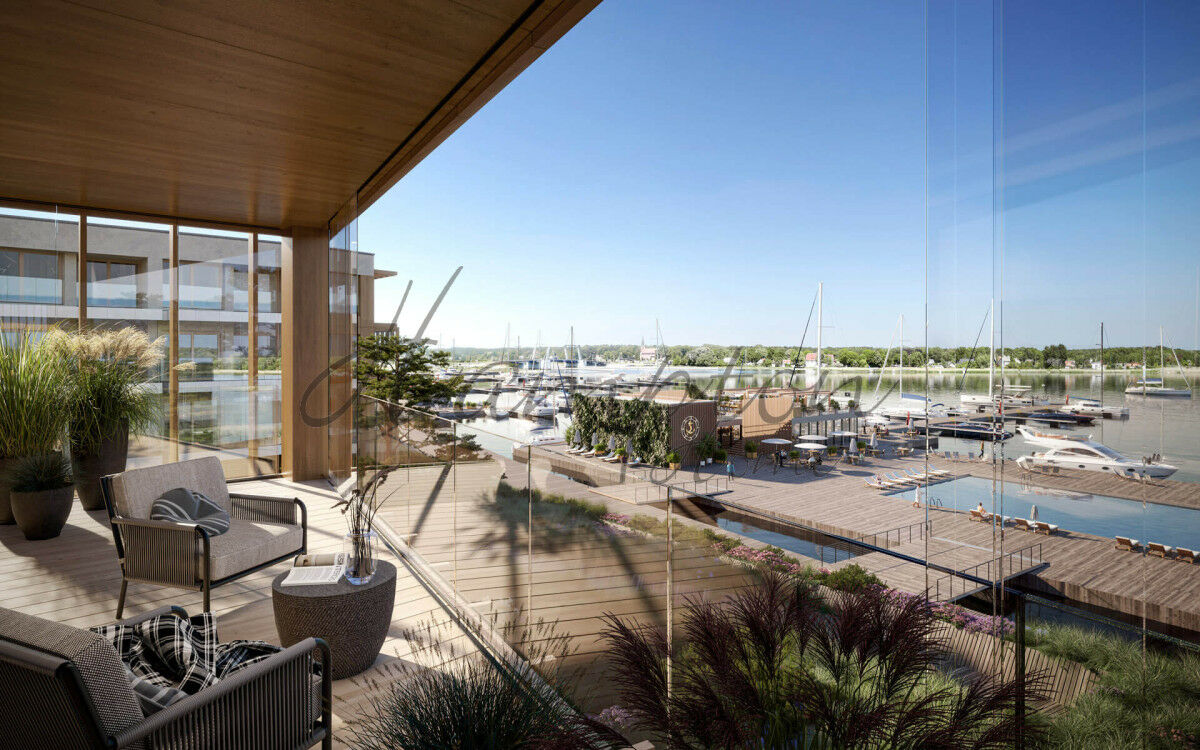Apartament 29,15m2 z ogródkiem i widokiem na marinę, do apartamentu przynależy podziemne miejsce postojowe.