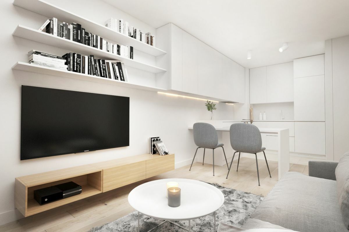 - salon połączony z kuchnią,