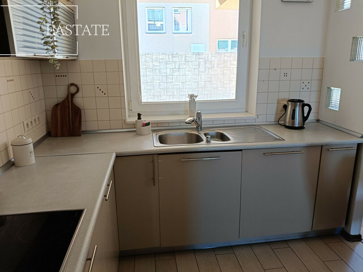 - Wyposażenie: W kuchni znajduje się lodówka, mikrofalówka, zmywarka, ponadto stół z krzesłami, w łazience do dyspozycji najemcy znajduje się pralka. W sypialni znajduje się pojemna szafa z przesuwnymi drzwiami oraz duże podwójne łóżko. Salon wyposażony został w sofę, praktyczną komodę oraz telewizor. Jest tu wszystko czego potrzeba aby wejść i zamieszkać.