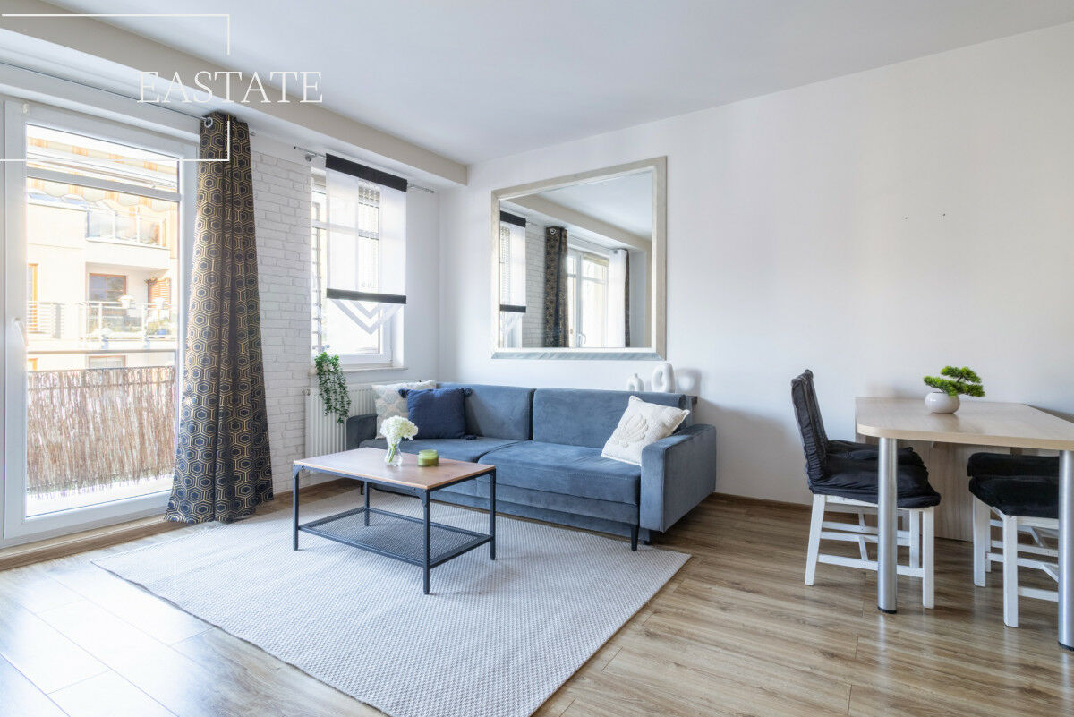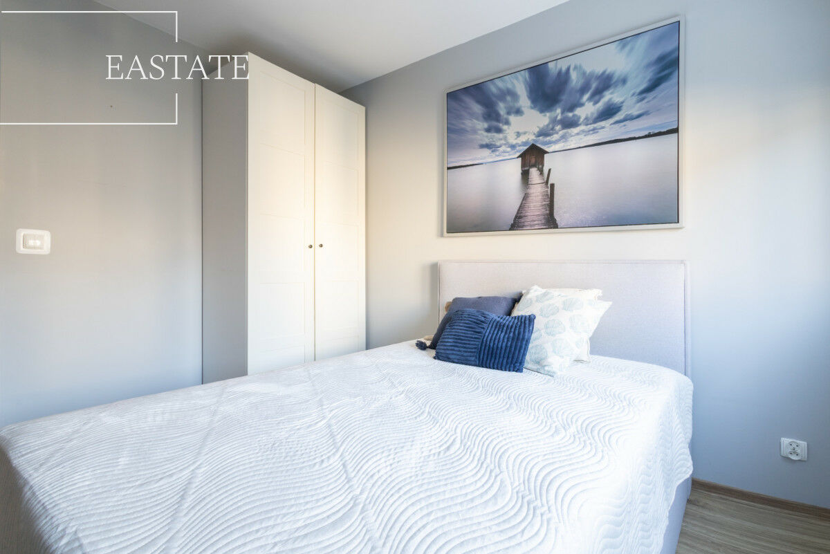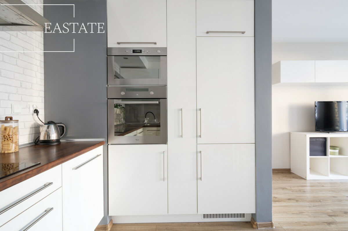 Wyposażenie: Aneks kuchenny został wyposażony w płytę indukcyjną oraz piekarnik, a zabudowa meblowa oferuje liczne miejsca do przechowywania. W łazience znajduje się pralka Amica o pojemności 6 kg, a także przygotowane miejsce pod montaż suszarki. Do dyspozycji najemcy pozostaje również telewizor 3D.