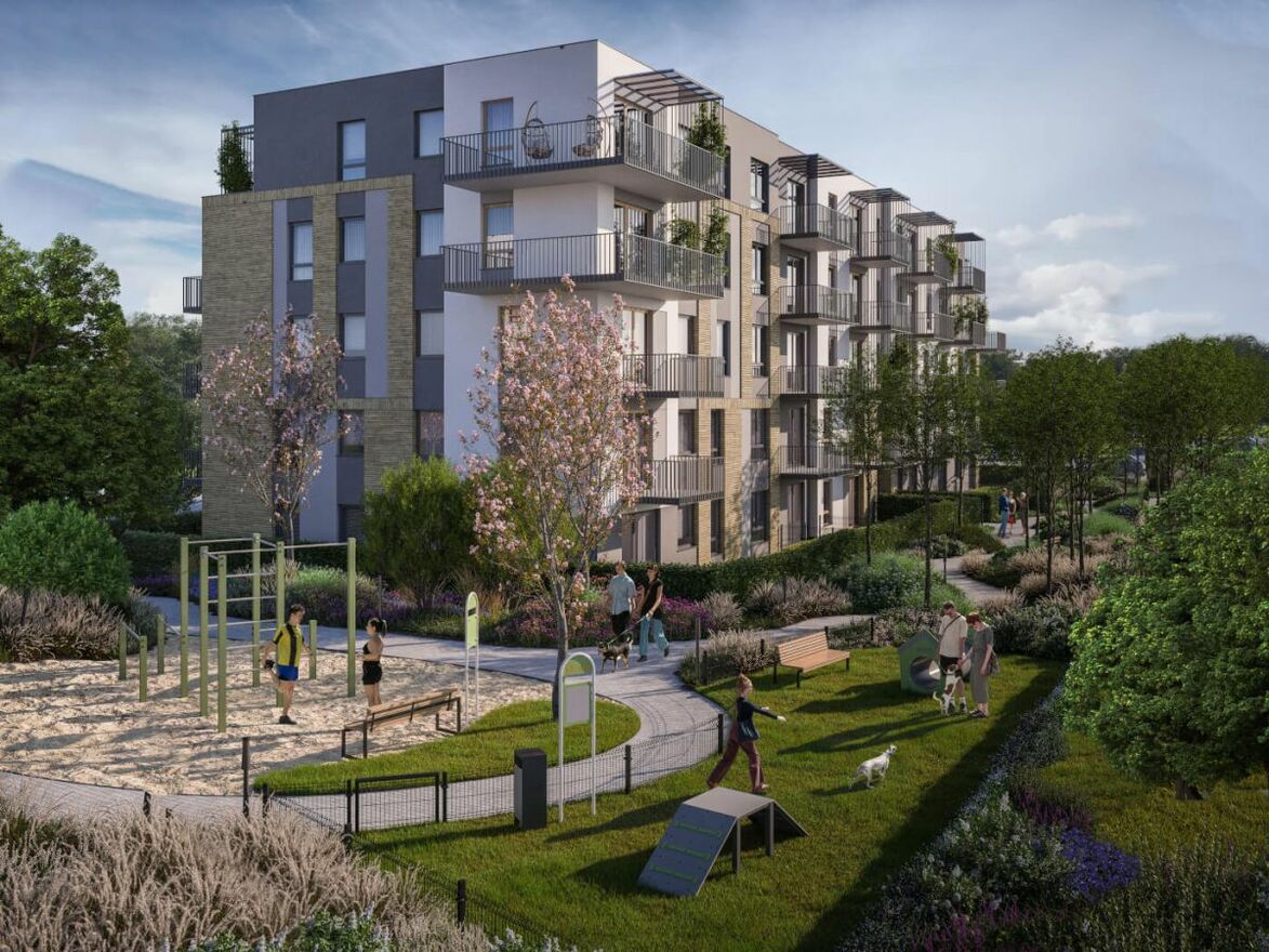 - Każde mieszkanie oferuje przestronny balkon lub prywatny ogródek, które naturalnie łączą wnętrze z zielonym otoczeniem i tworzą idealne miejsce do relaksu na świeżym powietrzu.