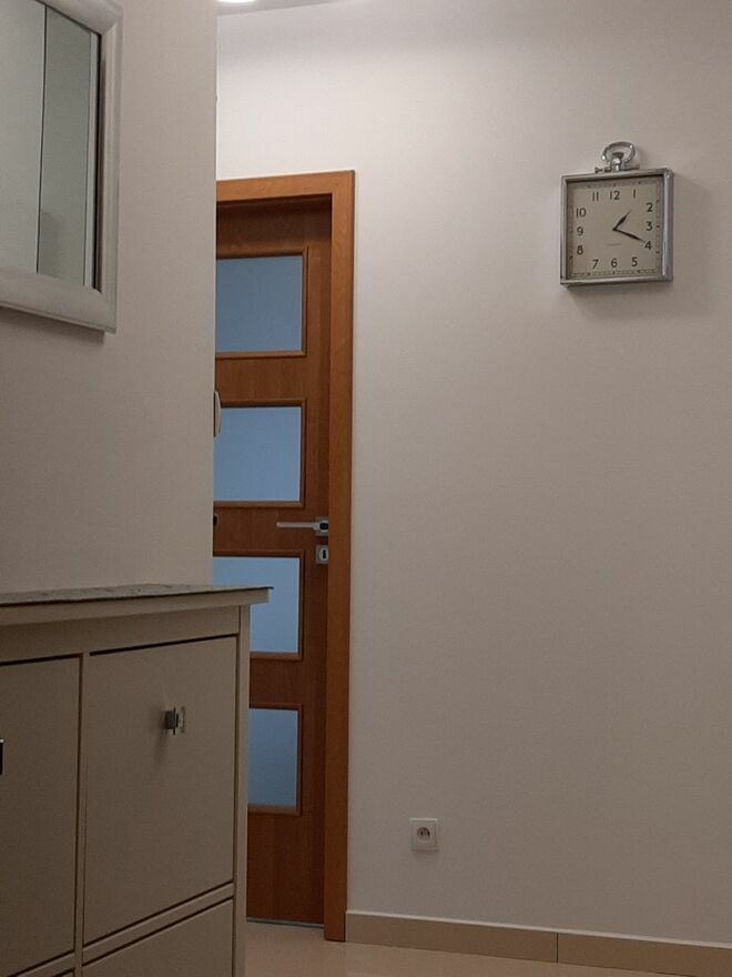 W przedpokoju znajduje się szafa ubraniowa i szafka na obuwie.