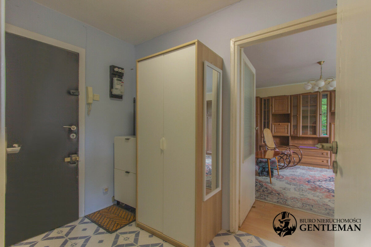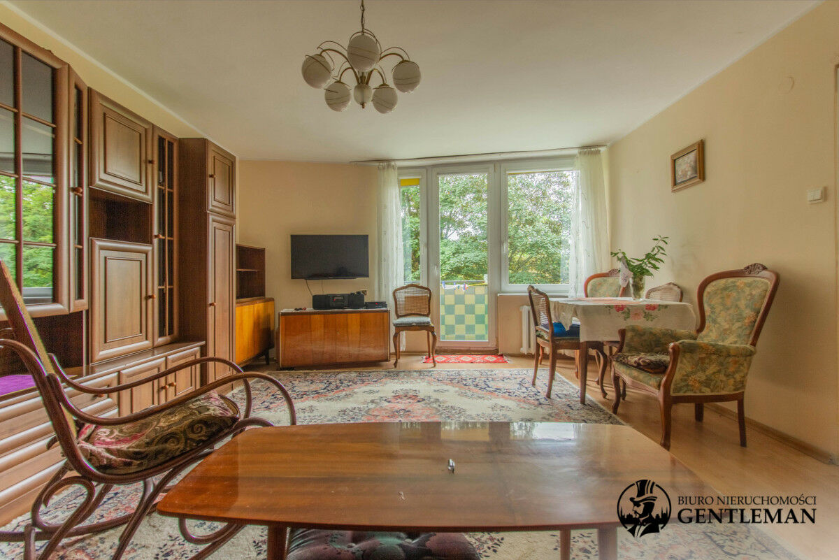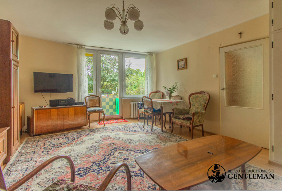 Całkowita powierzchnia lokalu wynosi 43 m2. W salonie balkon. Okna z salonu i sypialni wychodzą na zieleń i zadrzewienia.