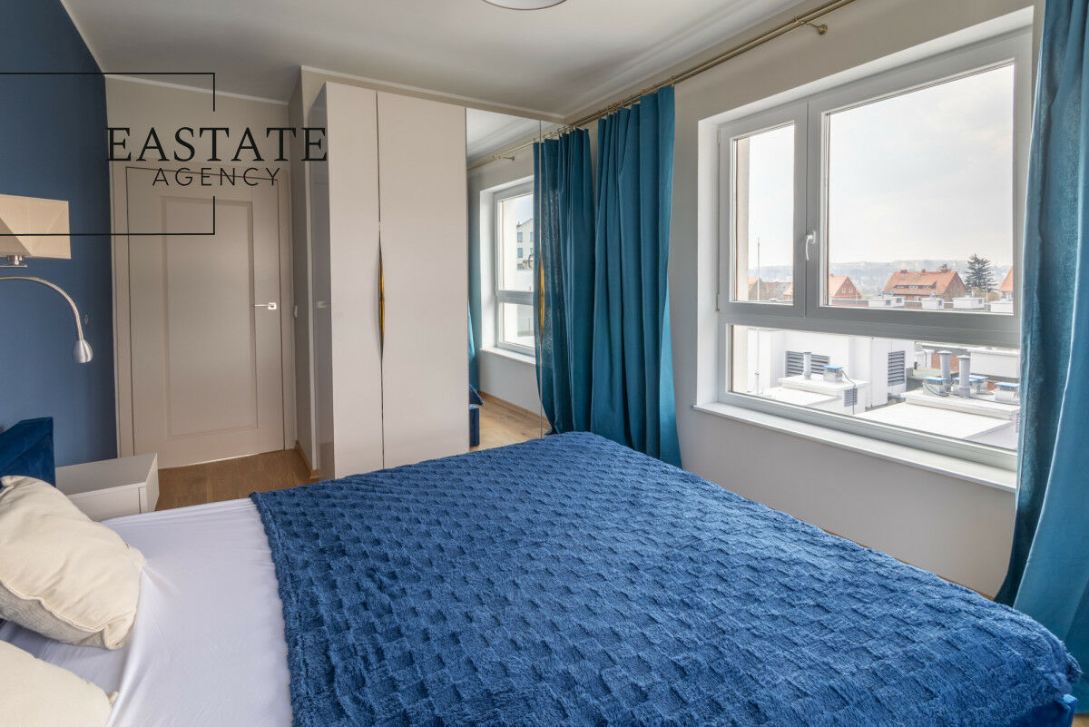 Do mieszkania przynależy również balkon, a także 40m² taras na dachu budynku z pięknym widokiem na Stare Miasto.