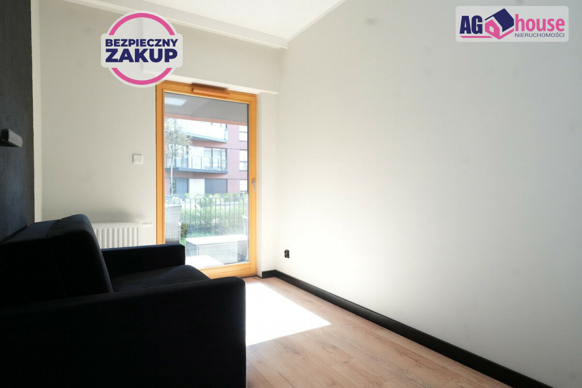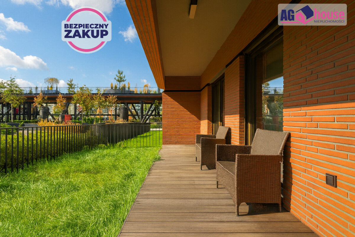 taras z wyjściem na prywatny ogródek z widokiem na patio.