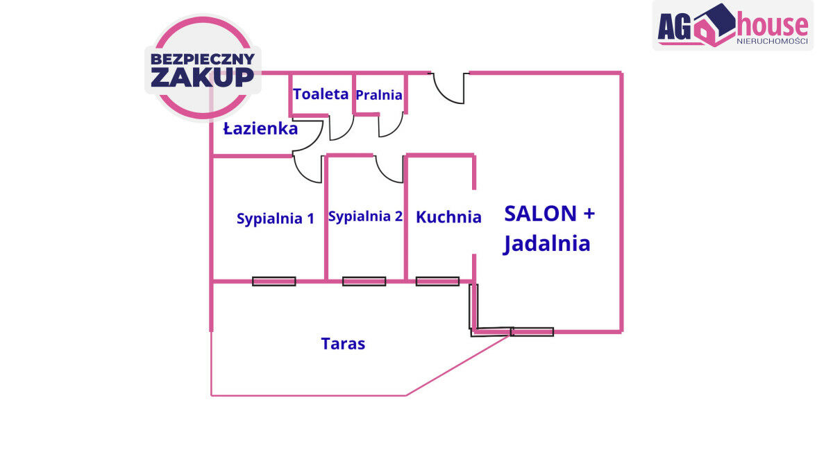 Niniejsze ogłoszenie i zawarte w nim informacje, treści oraz podane w powyższej treści ceny powyższa oferta ma charakter informacyjny i nie stanowią oferty handlowej w rozumieniu art. 66 kodeksu cywilnego. Zawarte w ogłoszeniu informacje na temat nieruchomości dotyczące ofert sprzedaży lub najmu nieruchomości mogą uleć modyfikacji lub zmianom w zależności od informacji przekazywanych od osób posiadających prawo do nieruchomości. Biuro AGhouse Nieruchomości dba, aby oferty były aktualizowane na bieżąco. Nasi doradcy dokładają wszelkich starań, aby oferta nieruchomości zamieszczona przez nasze biuro odpowiadała stanowi faktycznemu nieruchomości.