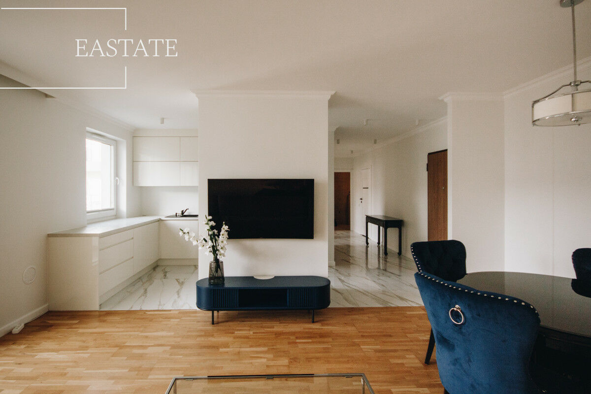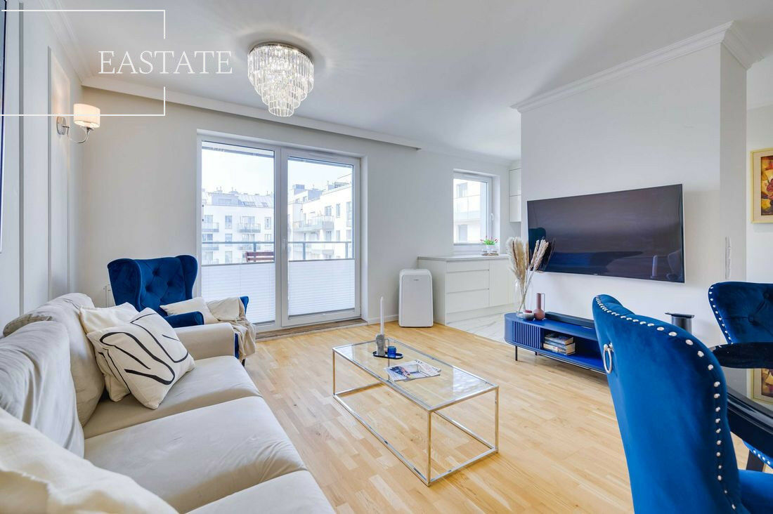 - Przestronny salon z aneksem kuchennym i wyjściem na balkon,