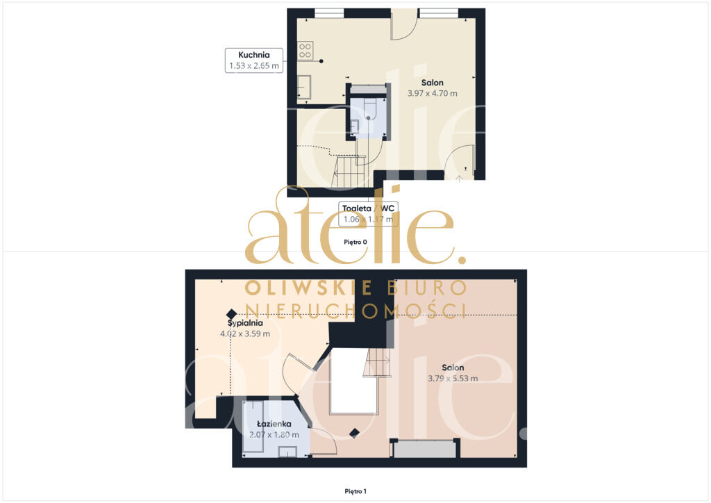 - otwartego salonu na górnym poziomi