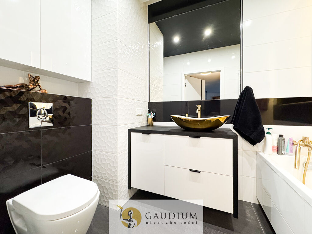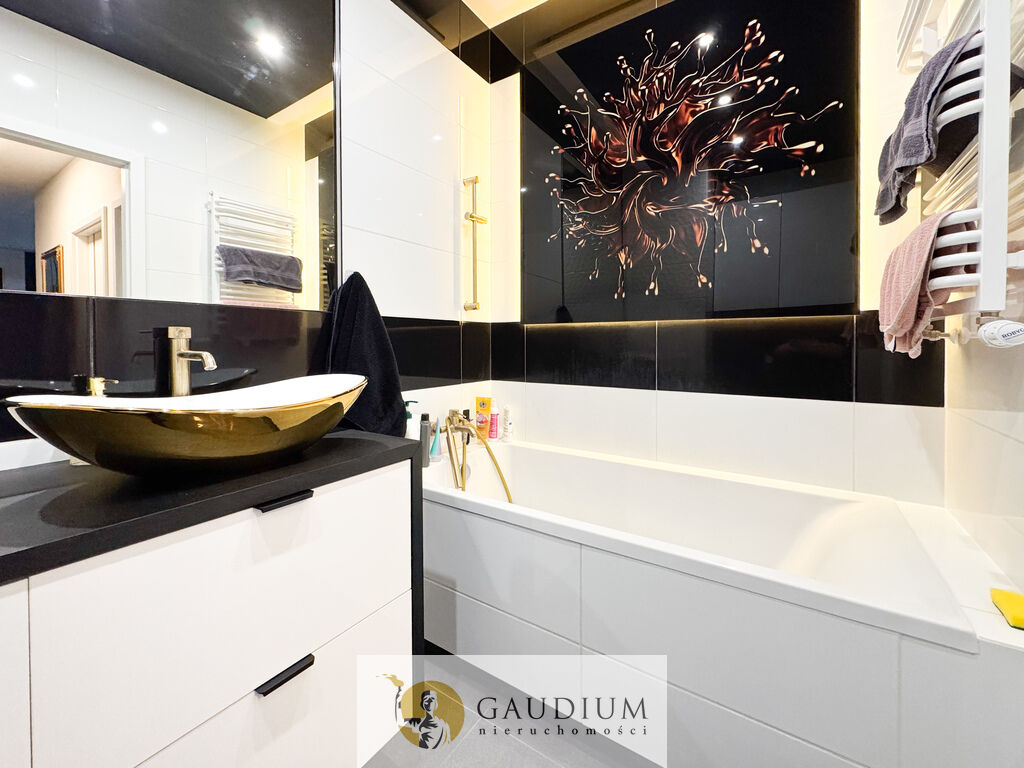 łazienki z wanną oraz stylową umywalką.W przedpokoju znajduje