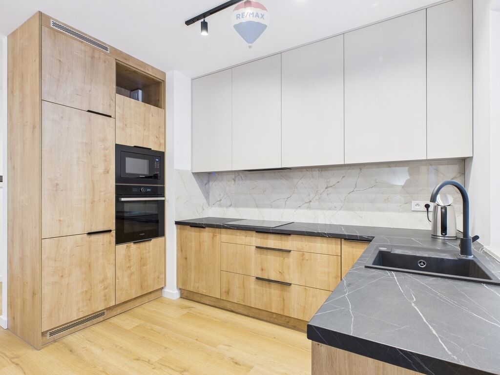 salon z aneksem kuchennym (sprzęt AGD: płyta indukcyjna, piekarnik,