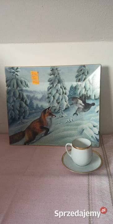 Olbrzymia Patera " Lis i cietrzew".Syg. przez F. L. Eklund. Rav och Orre.