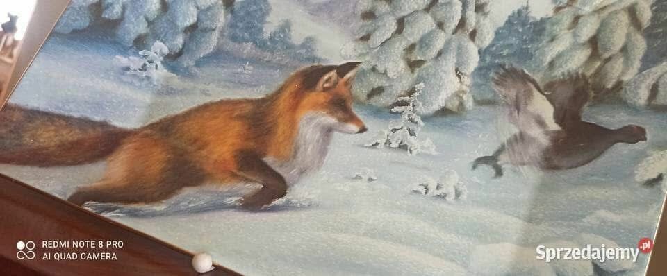 Zimowy pejzaż. Lis w pogoni za...
