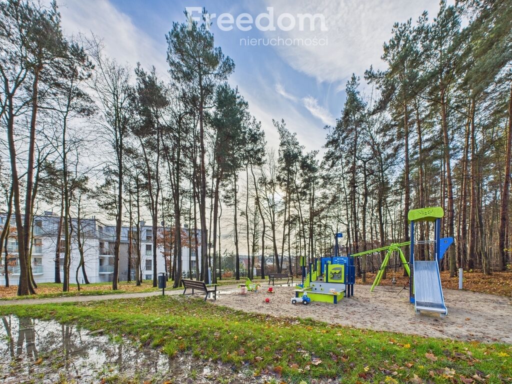 ogródek wychodzi na kameralny park z małym placem zabaw – zero