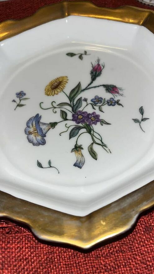 Piękny kubistyczny wzór, ze złotem na krawędzi. Porcelana w kolorze ecru.