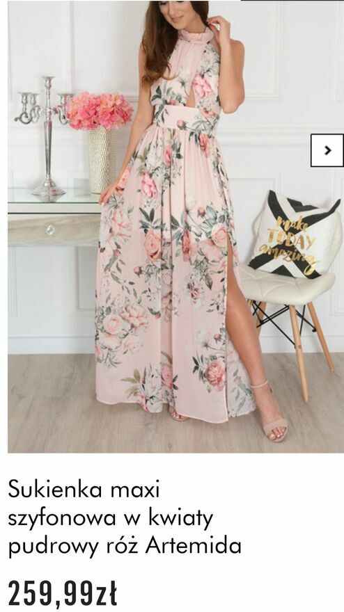 Piękna szyfonowa sukienka Artemida w wielu kolorach kwiatowych w zgaszonym różu . Doskonała na wyjątkowe okazję. Świetna propozycja dla kobiet ceniących wygodę i modny nietuzinkowy wygląd. Sukienka rozmiar S buty złote Guess rozmiar 38/40 dodaje GRATIS choć to nie warunek jeśli nie chcesz to nie, komplet użyty 1 raz na ślub cywilny. Cena okazyjna 250 bo szkoda aby zalegało mi w szafie. Wysyłka jedynie Pocztą polską po przedpłacie na konto bankowe. Nie wysyłam za pobraniem.Iza