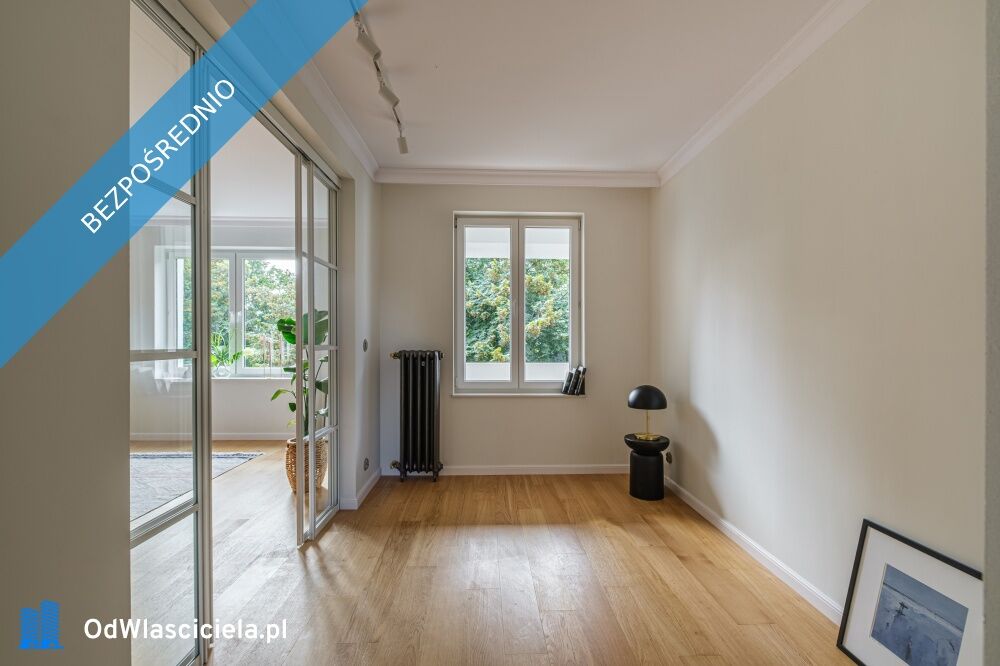 Wszystkie zabudowy robione na wymiar. Podłogi z desek fornirowanych. Markowe drzwi Barański. Profesjonalnie odnowione zabytkowe żeliwne grzejniki.