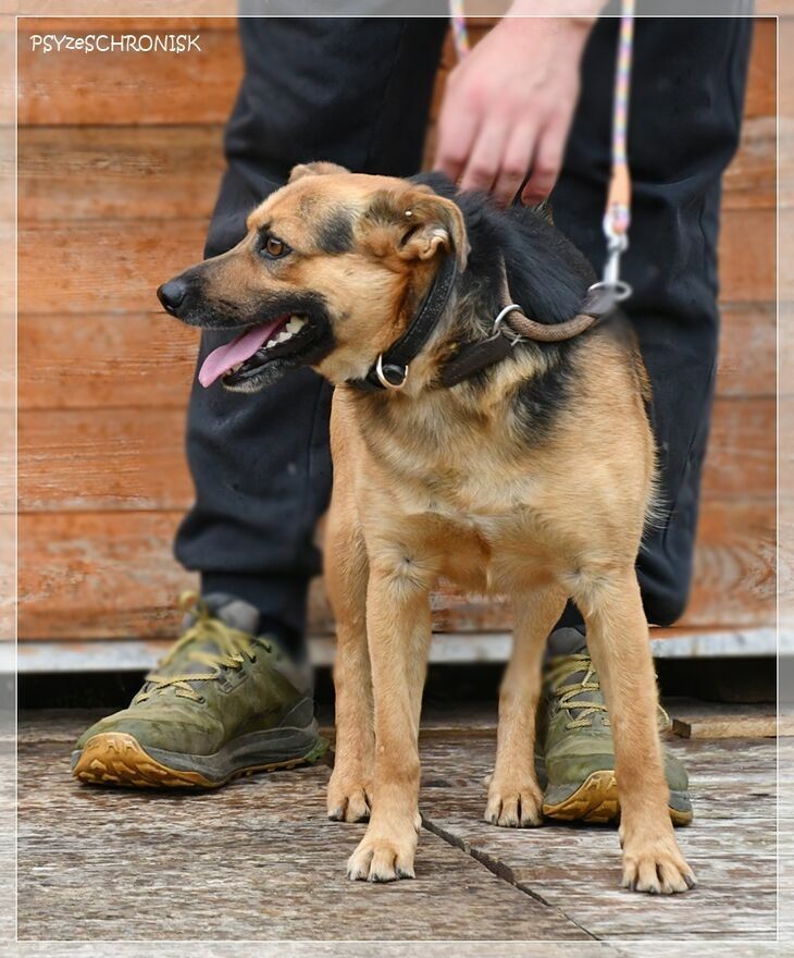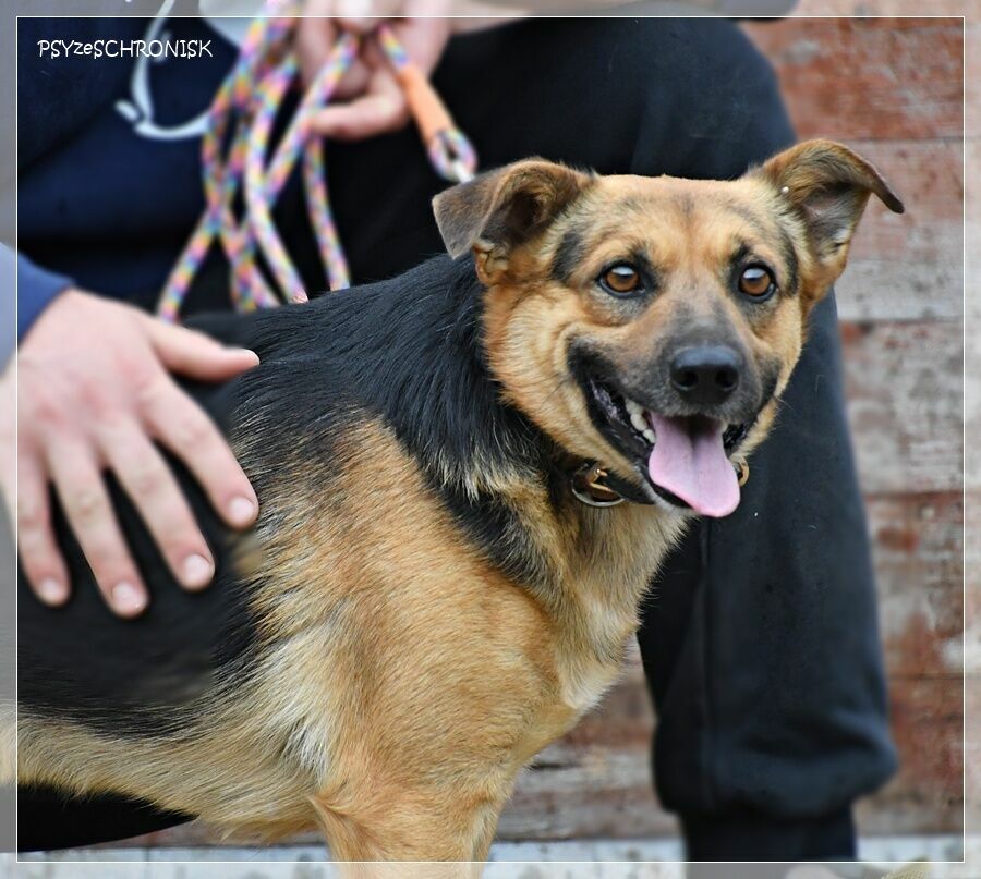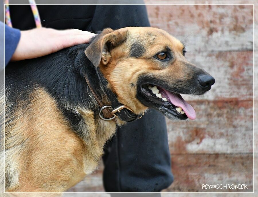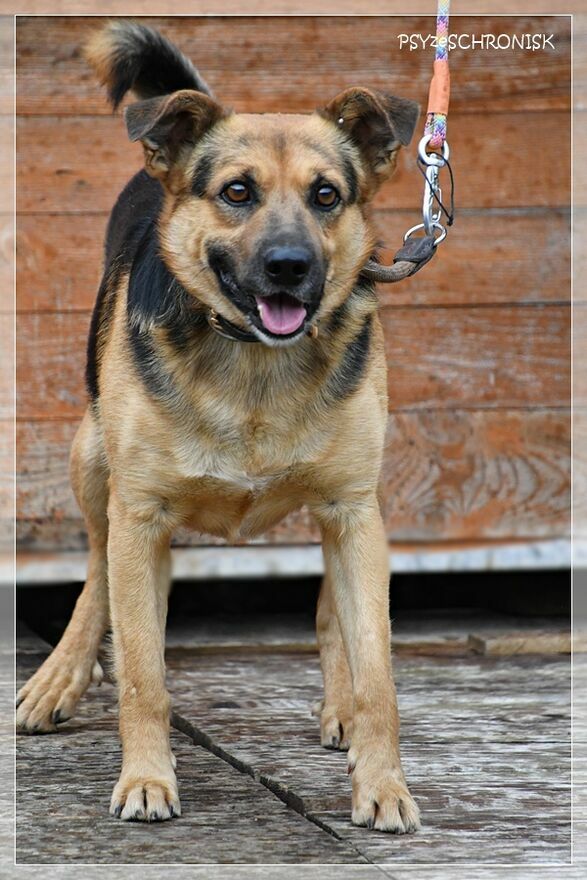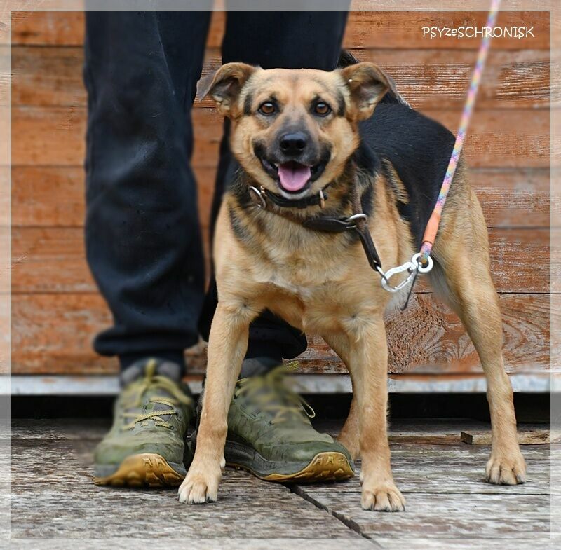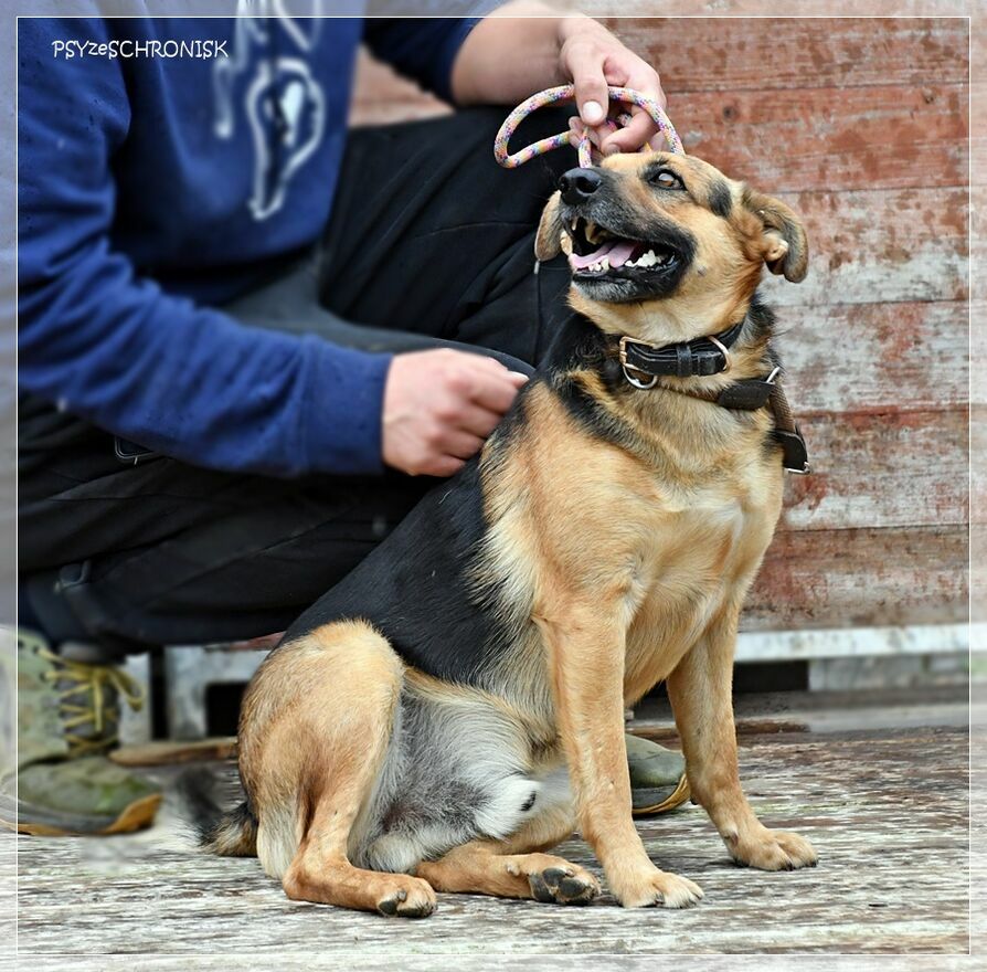Jest psem takim, jak na zdjęciach: najlepszym. Dobrym, poczciwym, z ufnymi oczami. Bardzo przyjazny i wesoły: uśmiech nie schodzi mu z pyska i nie przestaje wywijać młynków ogonem. Gotowy do zaprzyjaźnienia się z każdym, kto tylko zechce. I z innymi psami, jeśli już są w domu, też się zaprzyjaźni, bo do wszystkich jest usposobiony dobrze.